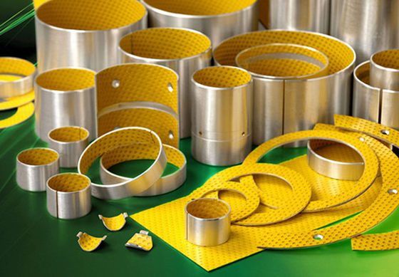 Metric self-lubricating sleeve bearing and imperial bushings made to order: standard bushing forms in special dimensions, half-bushings, special shapes obtained by stamping, self-lubricating sleeve bearing with locating notches, self-lubricating sleeve bearing holes and machined grooves, customized self-lubricating sleeve bearing designs